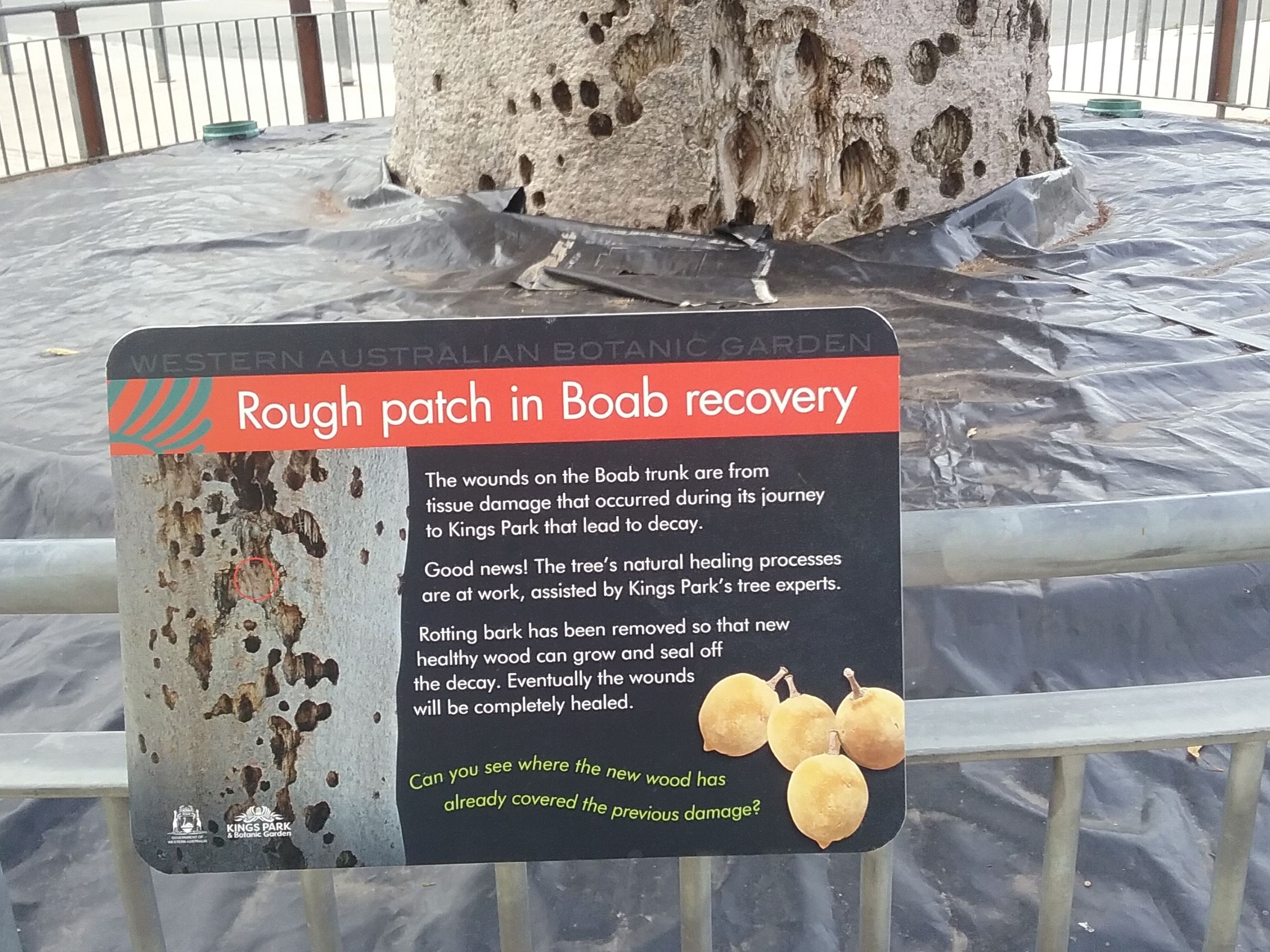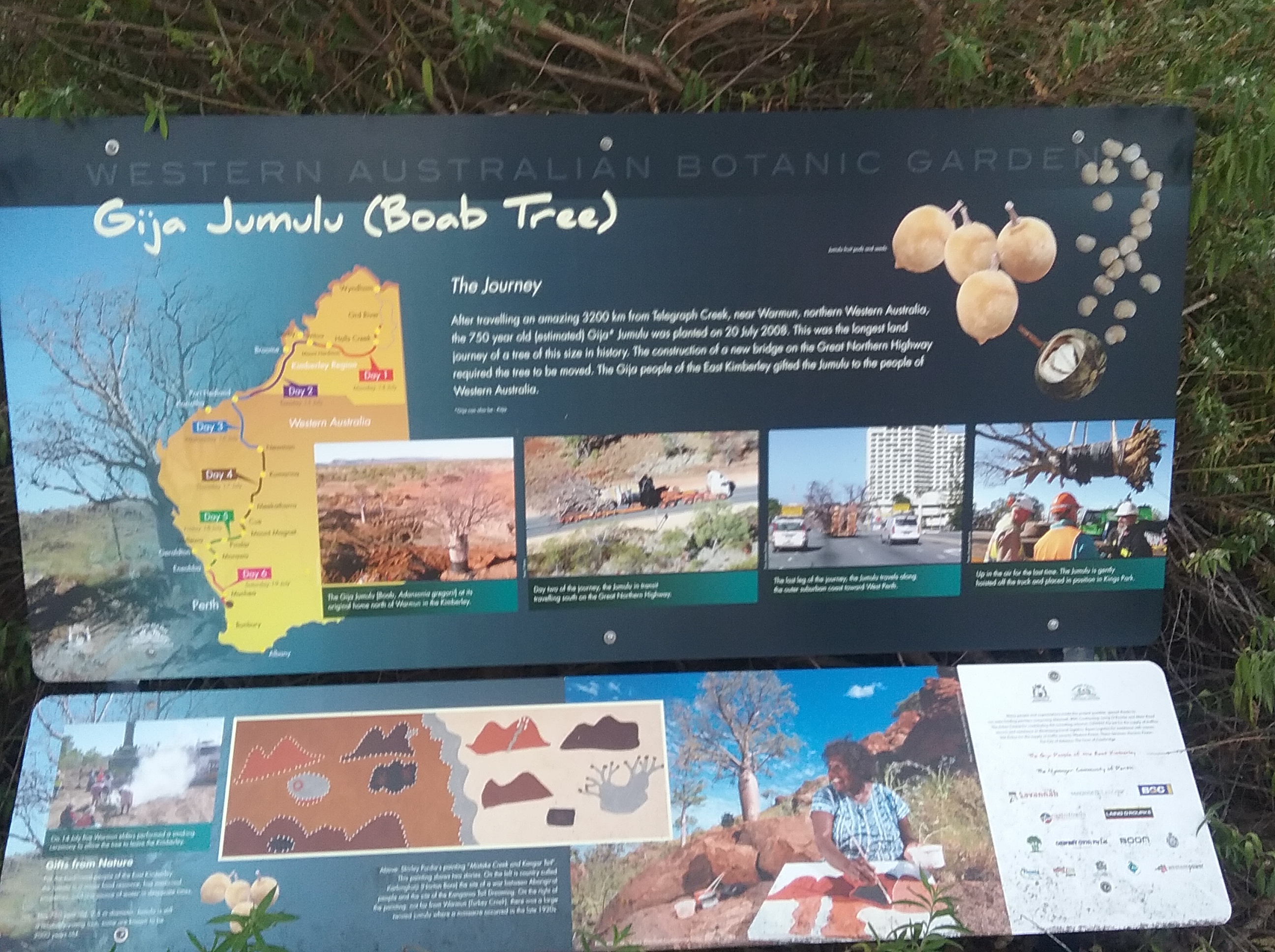 Its a beautiful park overlooking Swan River. Taking a scenic walk along a bridge is simply wonderful. We came across a barren tree at a distance and wondered about its significance in the park. A closer look at the tree displayed the history of the tree. Its a giant boab tree (Gija Jumulu – Aboriginal term) which was brought over to Kings Park from Telegraph Creek in Western Australia. After travelling over 3200km from its native place this 750 year old (estimated) tree was planted in July 2008. Its mentioned that this was the longest land journey of a tree of this size in history.